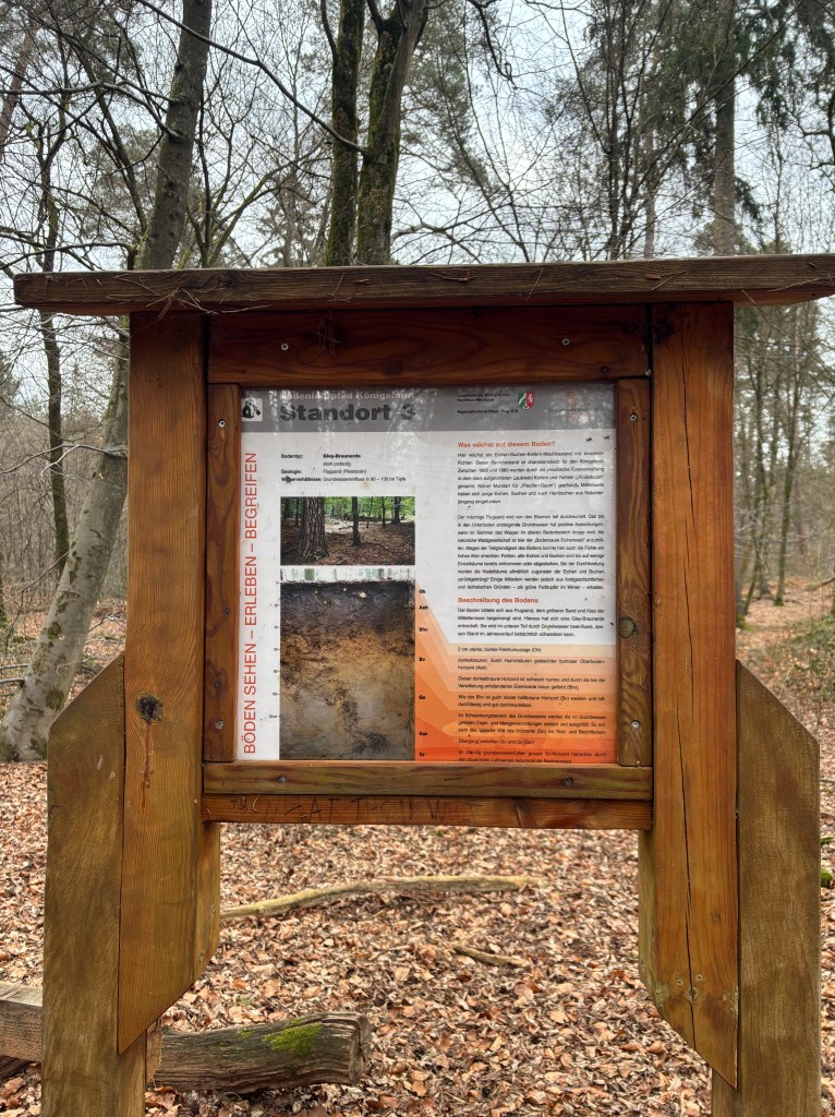 Im weitern Verlauf der Strecke befindet sich ein gut angelegter Waldlehrpfad, wo Bäume aus aller Welt gezeigt und erklärt werden.