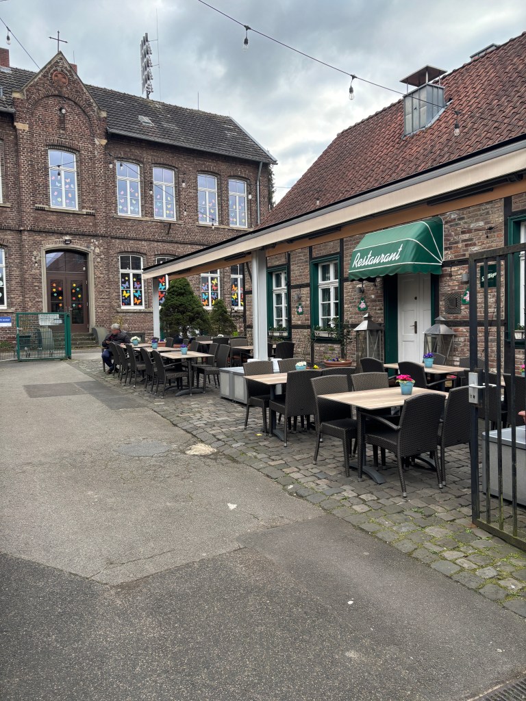 Der Start dieser Etappe beginnt am Wegestein an der Kirche St. Nikolaus in Bensberg hinunter in die Fußgängerzone.