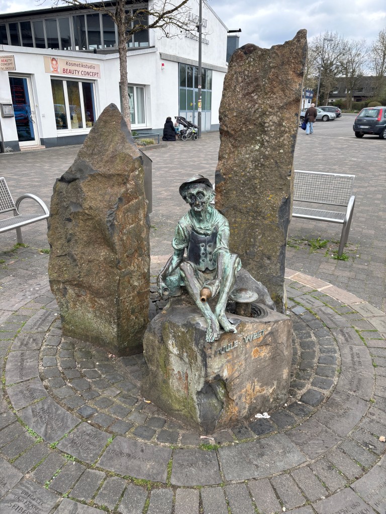 Am Etappenziel (Kreuzung B55 / Pohlstadtsweg) steht des bekannte Denkmal des „Fuule Weet“.