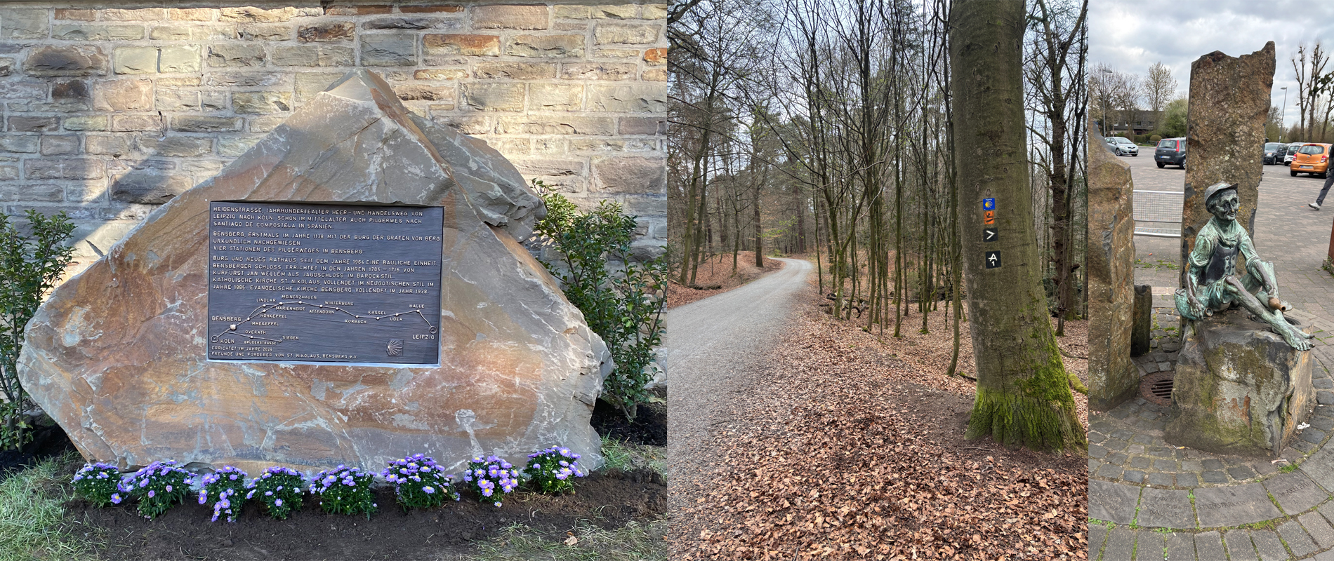 Der Start dieser Etappe beginnt am Wegestein an der Kirche St. Nikolaus in Bensberg hinunter in die Fußgängerzone.