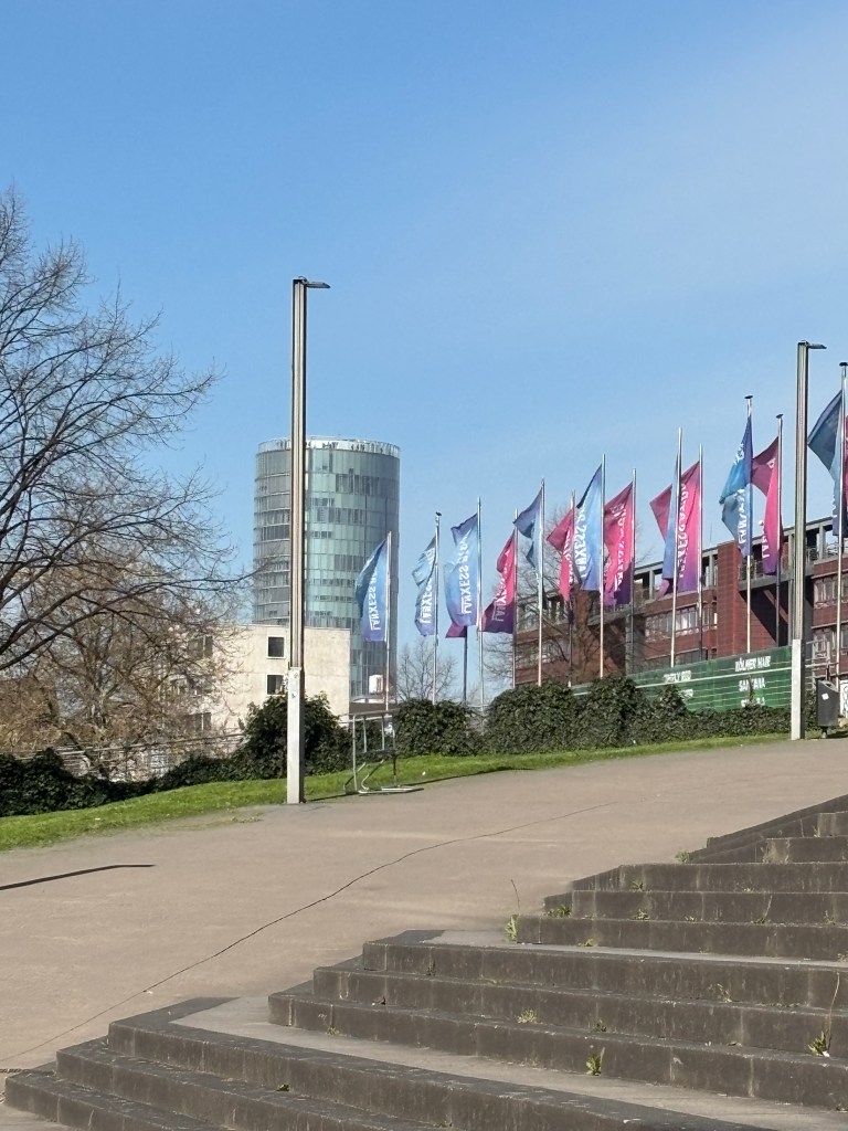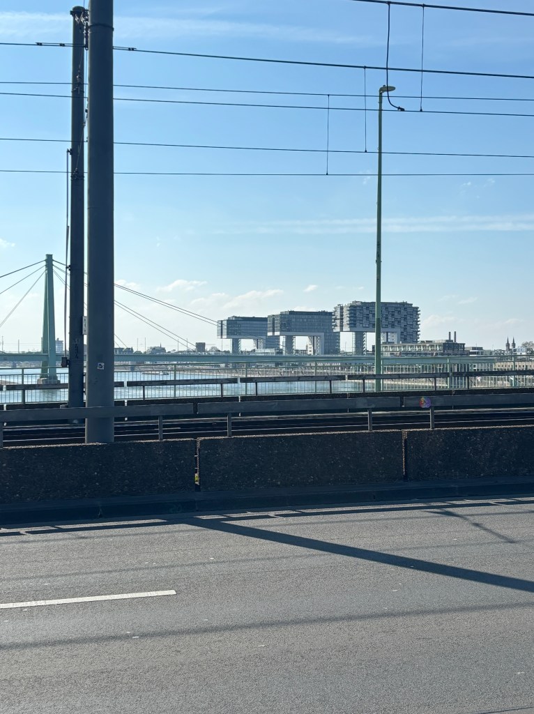Im weiteren Verlauf sehen wir auf der rechten Seite die Lanxess – Arena. Dort finden viele nationale und internationale Events statt. Der Kölner Eishockey Clubs „Die Haie“ hat dort seine Spielstätte.