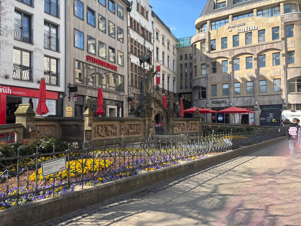 Über die Deutzer Brücke gehen wir zum Heumarkt, weiter über den Alter Markt mit seinen Sehenswürdigkeiten, z. B. historisches Rathaus. Die Straße Am Hof und der Roncalli Platz führen uns zum Ziel unseres Pilgerweges: den Kölner Dom!